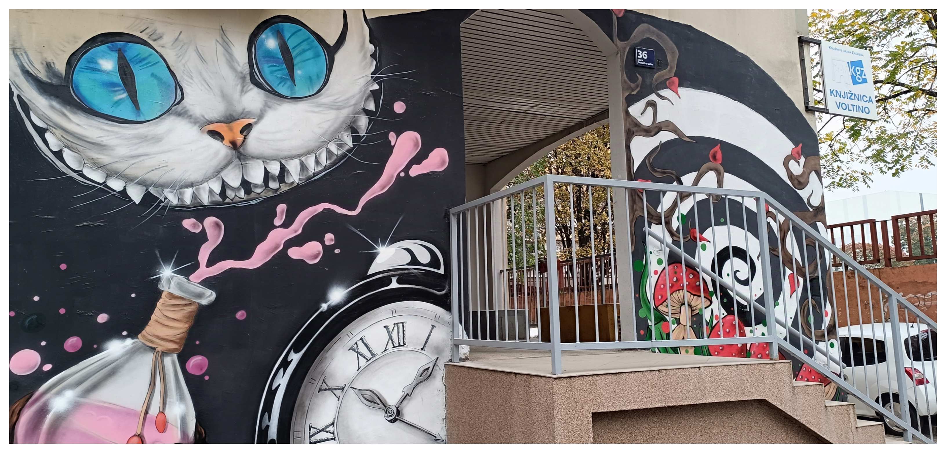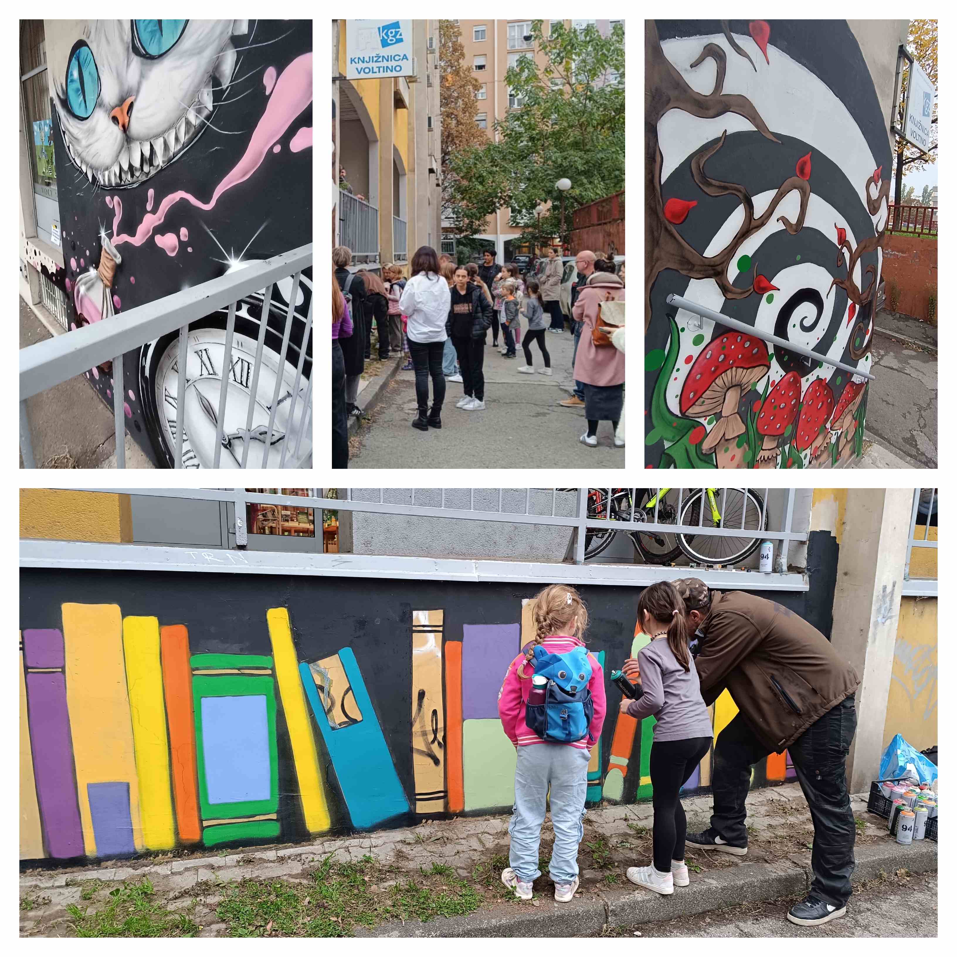 U sklopu programa, umjetnik Miro Modul Petković oslikao je mural na zidovima zgrade ispred ulaza u Knjižnicu Voltino na temu "Alise u zemlji čudesa".
