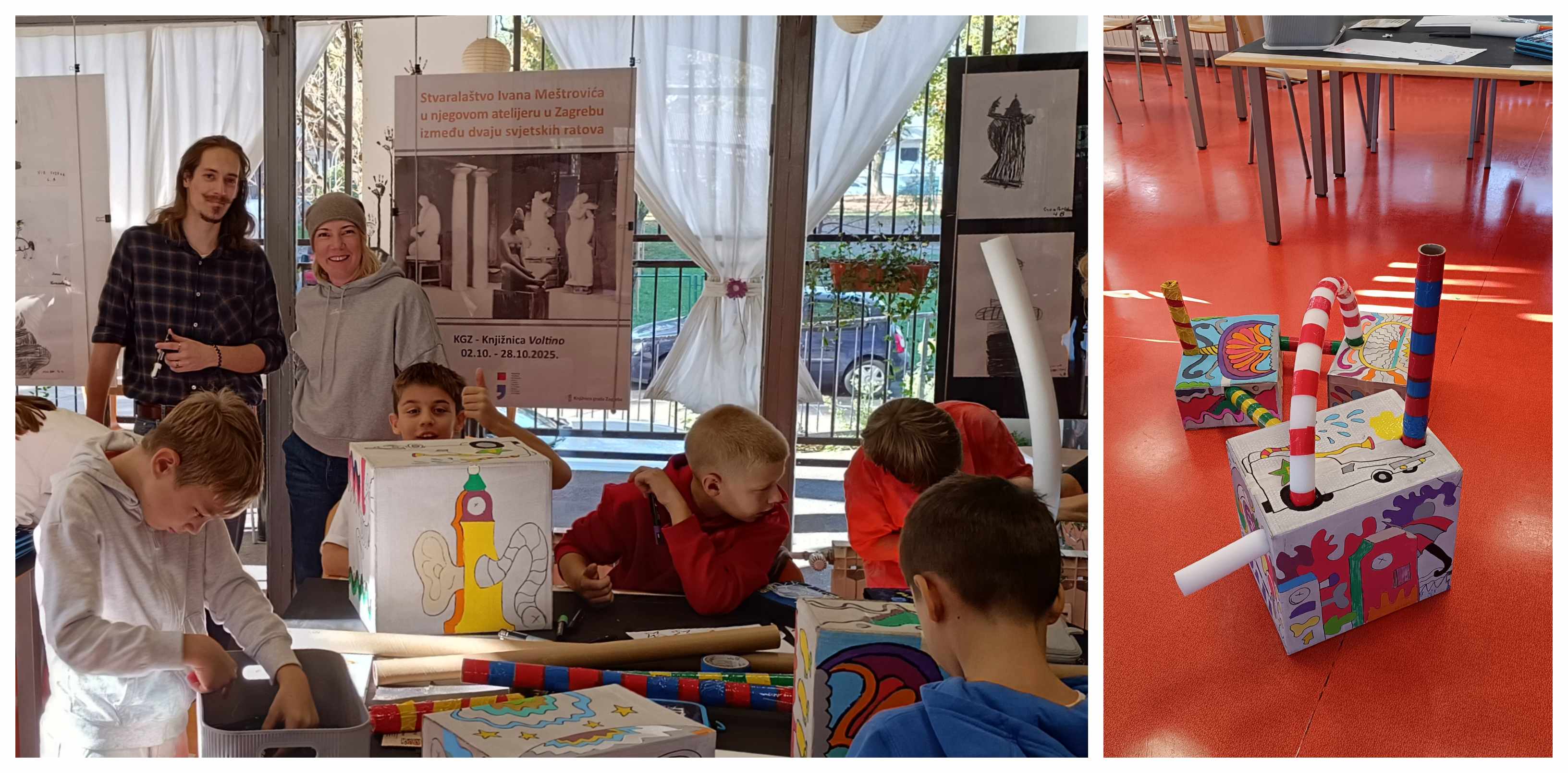 Paralelno s oslikavanjem murala, u srijedu, 5. studenog 2025. godine, proveli smo likovnu radionicu za učenike Osnovne škole Voltino. Pod vodstvom kiparice Melite Omeragić i asistenciju magistra edukacije likovne kulture Marka Domazeta, učenici 4.A razreda su imali priliku eksperimentirati kroz trodimenzionalno stvaralaštvo i učiti o važnosti umjetnosti u oblikovanju javnog prostora na temu profesora Baltazara i njegovog Zavrzlamatora!
